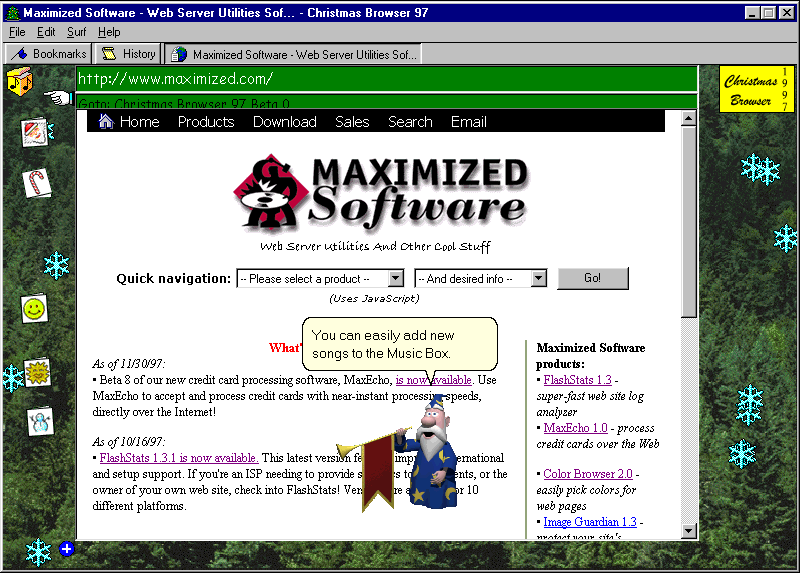 Christmas Browser 97 page: http://www.maximized.com/products/christmasbrowser97/