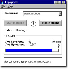 TcpSpeed is a utility which allows you to measure the bandwidth that flows over your Internet connection. It works by measuring how many bytes can be blasted over your connection in a given amount of time. This is especially useful for measuring the connection to your local access provider.
